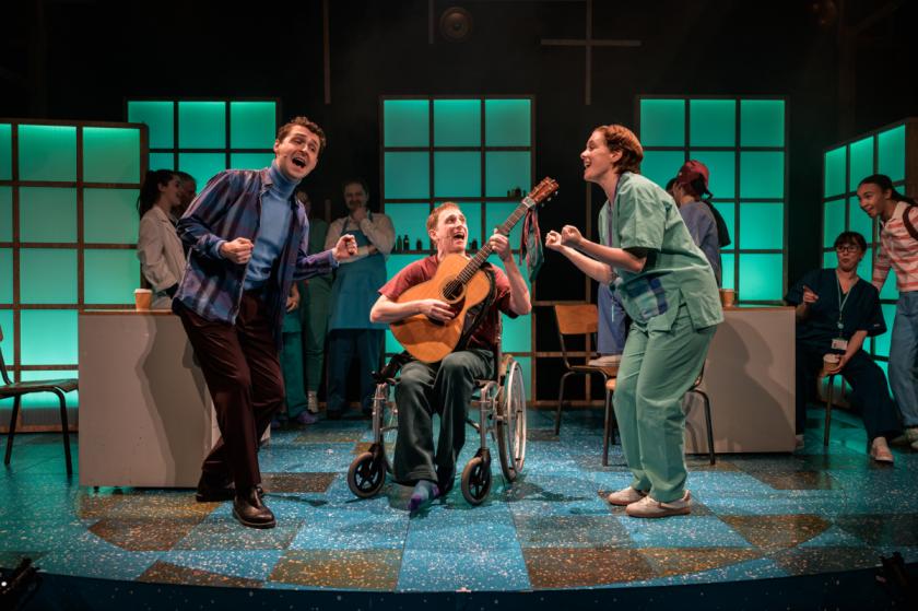 The creatives are helped by some of the best singing outside the West End right now (or, I’d venture, even in the West End). Nathan Salstone has a Lewis Capaldi vibe about him and a voice that squeezes plenty of Scottish brogue on top of melodies augmented by pipes and a hint of Proclaimers/Big Country tartan rather than Kenneth McKellar in a kilt. Maz McGinlay plays Doctor Jess Irvine, the childhood sweetheart from whom he drifted as his career took off with a brisk efficiency that crumbles under the emotional strain. She is a superb vocalist, with the kind of feeling in her voice that musical theatre requires and, like many in the cast, she really has no need of the body mics.