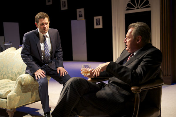 In the second half, the scene moves to Downing Street (pictured above right with Patrick Baladi and Michael Simkins) with a fictional conspiracy theory which blames the Iraq War not on Blair, but on the fact that Donald Rumsfeld hoodwinked the British Secret Service. Such heavy-handed satire plods along dutifully towards a tedious conclusion. Directed by the Hampstead’s artistic director Edward Hall - whose magic touch has deserted him here - the text is too dull to animate Peake’s skills, and the rest of the cast remain similarly untaxed. Lloyd Owen’s Nick, Patrick Baladi’s PM and Michael Simkins’s head of intelligence do their loyal duty, but that’s about it. On this showing, journalists really shouldn't write plays.