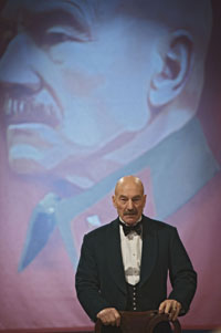 If the production had a flaw, it was the slightly pallid nature of the supporting roles. In his early appearances Macduff (Michael Feast) came across as a fawning equerry rather than a significant political player, so lacked the necessary voltage to carry off his apotheosis as the implacable avenger of his murdered wife and children who eventually hacked off Macbeth's head. Martin Turner's Banquo was honest and upstanding, but when he reappeared as the ghost at the banquet, he looked more like the chap from next door who'd had an embarrassing accident with a pot of red paint than Macbeth's supernatural nemesis. Still, setting Banquo's murder in the rocking carriage of a clattering steam train was a masterly stroke, somehow evocative of both wartime Britain and revolutionary Russia (Macbeth succumbs to the bourgeois cult of personality, pictured below).