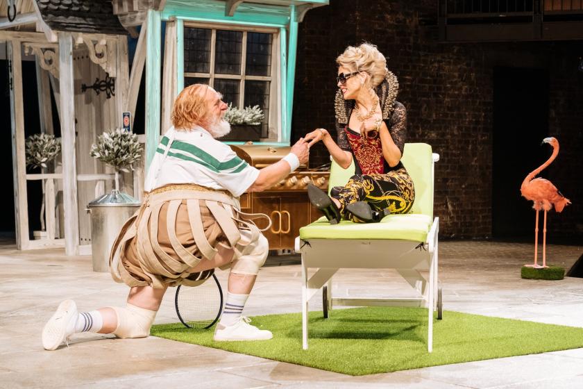 Most such protests will be centred around its treatment of the text – in particular, the plentiful present-day interpolations – but Merry Wives is harder to defend as hallowed ground than most of the rest of the canon (and if you’re looking for comparisons, the Globe’s 2017 Romeo and Juliet surely still tops the recent bill for sheer artistic vandalism). There’s a new prologue, which could have come straight from Upstart Crow, in which a beleaguered (offstage) Shakespeare is instructed by Queen Elizabeth I, appearing via a nice piece of animation, to come up with something about Falstaff in love; he gets a deadline – two weeks – so it’s hack work, indeed.