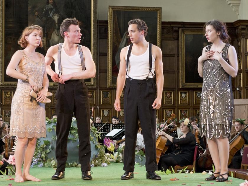 Tightly organised romantic sentiment comes before the Shakespearean sharp edges of David Edwards's pacy supervision, trimming the text but never butchering it as seems to have been the case with Garsington's version last summer. James Henshaw, assistant chorus master at English National Orchestra and working on the company's forthcoming Jenůfa, has the total confidence to get the right precision from the excellent young Outcry Ensemble – game to be flower-wreathed – in the Overture's fairy music, the perfect shaping of its love themes and a rustic rudeness to the mechanicals' bergomask stomp.