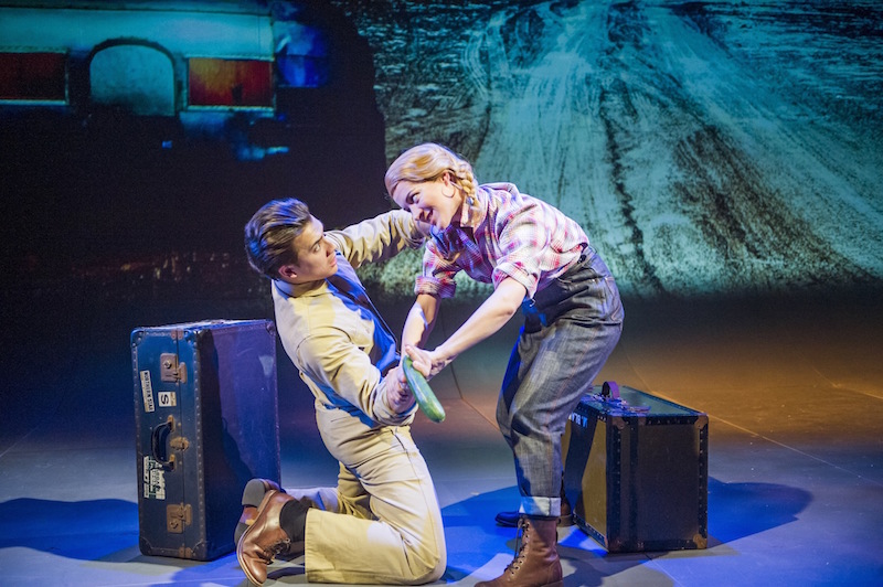 The story follows the fortunes of two brothers – hotel manager Lou (Simon Lipkin) and army deserter Joey (Dean John-Wilson) – who get mixed up with two women – nightmare fashionista Myrna (Catherine Tate, woefully miscast) and her best friend Candy (Florence Andrews, pictured above right with John-Wilson), a dungarees-wearing sheep farmer. This last detail is plainly to justify a sight gag featuring a dead sheep, which gets one of the best laughs of the night. Andrews herself, though, goes some way to salvaging some fairly forgettable songs. She alone among the cast comes across as a real person.