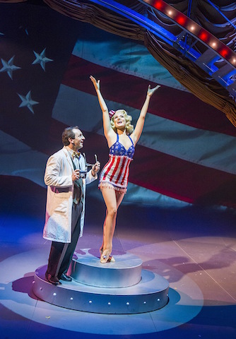 Too bad that this fascinating scenario should be squandered on a run-of-the-mill show that scurries frantically from one well-worn musical-comedy trope to another without once pausing to reflect on the wider issues. In 1952 the words “mutually assured destruction” hadn’t yet entered the lexicon of the Cold War. Americans were thrilled to think that their scientists were leading the way in nuclear science and flocked to the Las Vegas hotels that offered the best view on test days. Servicemen were marched close to the blast site and told that to protect themselves from the effects of radiation dust they need only take a shower and an aspirin.