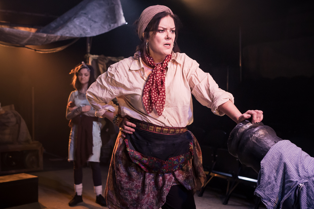 So as a predictable production hampered by awkward staging, director Hannah Chissick's Mother Courage and her Children at Southwark Playhouse is a thin, diluted appeal against war when it could be an excoriation of the tiny moments of self-interest that together become a flood of inhumanity. The Donmar's recent staging of Brecht's The Resistible Rise of Arturo Ui brought us a scalding satire of the Trump administration, but this production has little to say beyond the obvious. When jaunty slapstick both draws attention to atrocities and salves desperation with humour we're already conditioned to watch from a distance, and the dull irony of mournful lyrics is sung to an upbeat score (Mother Courage is studded with songs), what we're left with is mild criticism of the unspeakable.