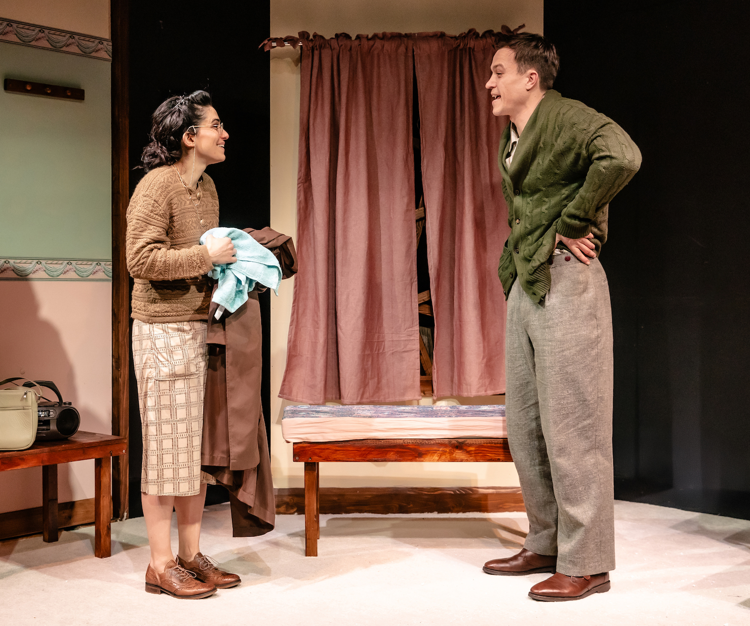 In Park Theatre’s pocket Park90 space, the teeny stage area is just about able to accommodate a double bed; behind it is a curtained window. A radio broadcast tells us we are in the midst of the Second World War and the Japanese are taking over southeast Asia. In the bed are Leonard (Barney White) and Violet (Cassie Bradley). As the slowly unfolding dialogue reveals, this is the young couple’s last night before conscripted Leonard has to leave.