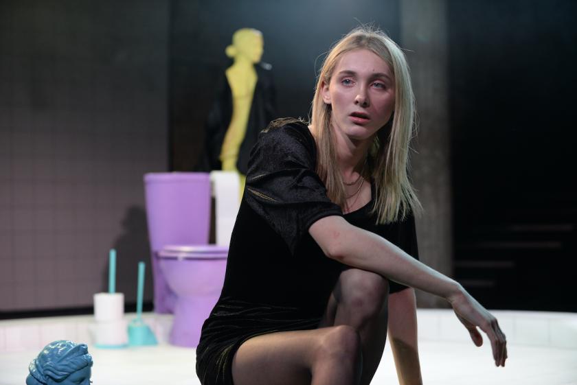 The Bush’s opening production following national restrictions, Overflow is imaginatively directed by Debbie Hannan, who makes a virtue of the constraints of the setting, beautifully designed by Max Johns, where one bathroom — with its luridly coloured sculptures, can seem like the very centre of a life, a universe. As the piece’s title suggests, the metaphor of water and flooding is enacted visually with a leaking white pipe, blocked toilet bowl and overflowing basin. As Lyons splashes about in the slightly chaotic ending, after having drawn a dick on the Venus statue, a sense of nihilism mingles with the hope that there might be better days.