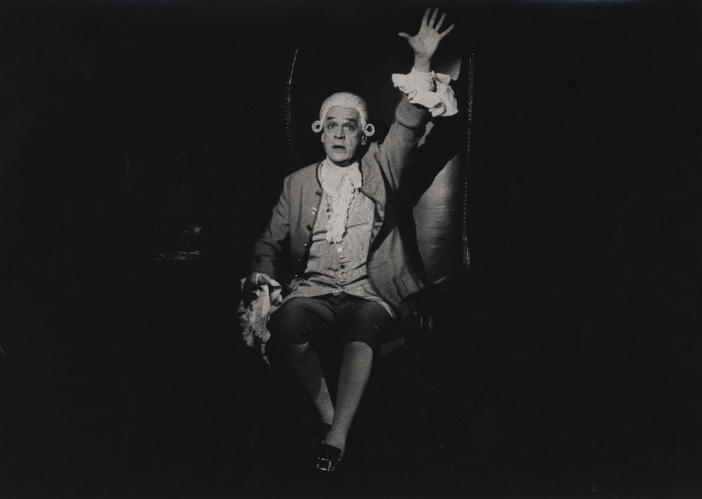It’s been some while since New York’s Lincoln Center Theater mounted as brazenly audacious a mainstage premiere as John Guare’s fantastical Four Baboons Adoring the Sun, in 1992, directed by Hall and starring a radiant Stockard Channing: but there was Hall presiding over a press preview like the beneficent paterfamilias that, with six children and nine grandchildren, he actually was. The bravery paid off, netting Hall yet another in an ongoing series of Tony nominations. He twice won the prize, for The Homecoming (1967) and Amadeus (1981). (Pictured below: Paul Scofield in Amadeus. Photo by Nobby Clark)