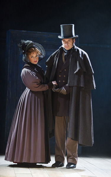 Still, on the way Lester gives a really stirring performance, striding the stage and radiating sincerity and emotional warmth. His scenes with the company of actors, with Charlotte Lucas playing Ellen Tree while Ryan Kiggell makes a perfectly stiff Charles (both pictured above right) and Eugene O’Hare a convincing Pierre, are alive with passion. Also worth mentioning are Rachel Finnegan who plays three roles — Aldridge’s wife, a young Polish journalist and another actress — and Natasha Gordon as a West Indian servant with a crystal-clear worldview.
