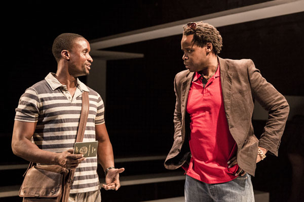 Staged at this venue’s upstairs studio space, on designer Paul Wills’s versatile set, whose zippy neon lighting suggests endless institutional corridors or the wings of planes, the play is directed with energy by Simon Godwin. Fiston Barek and Calvin Demba bring out the contrasts and similiarities of Bashir and Kola, while Peter Bankolé and Seun Shote give life to Femi and Abiola (pictured above). Equally impressive are Anamaria Marinca and Claire Lams as Anka and Lisa. An evening that is brisk but finally very painful.