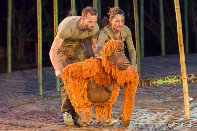 My reservations about the show notwithstanding, there is real magic here, too. Puppet designers Finn Caldwell and Toby Olié are working at the height of their powers, and the puppets ooze dynamism and grace. The elephant is controlled by four puppeteers – one each for the trunk, head, heart and hind. Her giant floppy ears perk up with danger, her winding trunk twists and teases, and those dark sparkling eyes take on a life of their own. There are also lumbering orangutans (all hanging arms and shaggy coats), a prowling flame-orange tiger, fluttering birds, and a host of, um, "roam-on" roles.