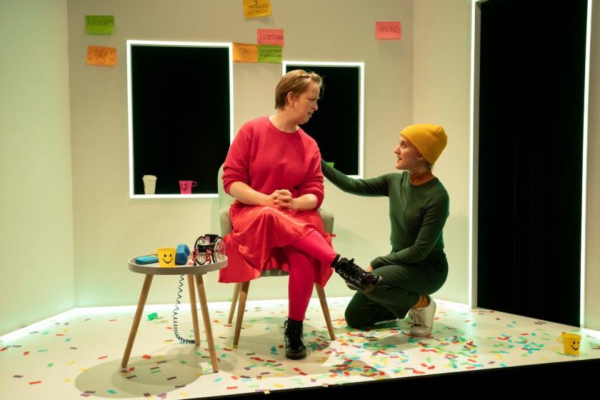 It begins with a moment that deliberately provokes the audience. Stevens, who narrates her own story from centre stage, has a disability – athetoid cerebral palsy – and she challenges everyone in the room by calling us out as smug liberal Guardian readers who are patronising a “freak show”. Then, as the piece’s other actor, Leigh Quinn, arrives (in the guise of a latecomer), the meta-theatrical nature of the story becomes instantly apparent: Quinn plays all of the other characters, and Stevens both bears witness to her own experiences and gives us a running commentary on various issues: urban gentrification (she lives in Elephant and Castle), disability shaming and the difference between EU law and our own.