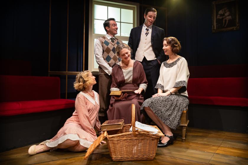 Carla Joy Evans’ beautifully observed costumes set the tone. The styling is just so for upper middle class New England in the 1920s, a touch of Paris (Paul Poiret gets a namecheck), a cloche hat and shoes to die for darling. Once I stopped ogling the cloth (the weight of which reflects the personalities wearing it) and the cuts, Alex Marker’s set oozes into your consciousness: the paintings of mother and child, tacky but pricey; the claustrophobic lack of windows, all shut; the drawing room as prison cell. We’re in it too, director Joe Harmton staging the play in the round, our backs to the wall in more senses than one.