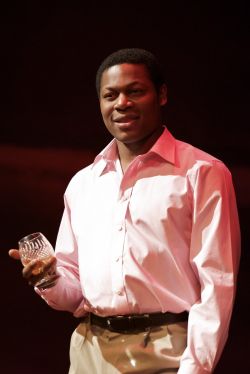 It looks like the evening is headed for disaster but Paul, as it turns out, saves the occasion, rustling up a gourmet scratch supper from the ancient leftovers lurking in the fridge, discoursing passionately on J D Salinger's The Catcher in the Rye, dazzling his hosts with the prospect of bit parts in his father's forthcoming movie musical and eventually wheedling those two million bucks out of the South African's pocketbook. (He is played by Obi Abili, pictured right: credit, Manuel Harlan). Delighted, the Kittredges, with a thrill of radical chic, insist their new friend stay the night: such a nice young man, and black too, how exotic! But then Paul just has to go and spoil it all by bringing (full frontal nudity alert here) a rent boy into his bed.