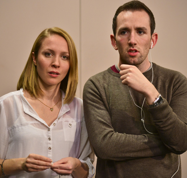 If, at first, James is mildly irritated by his inability to remember the Gaelic for “somersault”, he is soon considerably unsettled. He feels displaced. Words are not the only thing he is losing. James has gone bankrupt. Barrett, his sinister liquidator, snatches his possessions. Alison, his wife, leaves him (Emily Bowker as Alison, pictured right with David Carlyle). And, to top it off, Sandy, his father, is dying. The father and son conversations, often in Gaelic, movingly illustrate how language can bond generations, as well as the speakers to their home. In contrast to Sandy's refreshing ambivalence to change, James clings on. When everything of material value has gone, he longs for the comfort of family and familiarity.