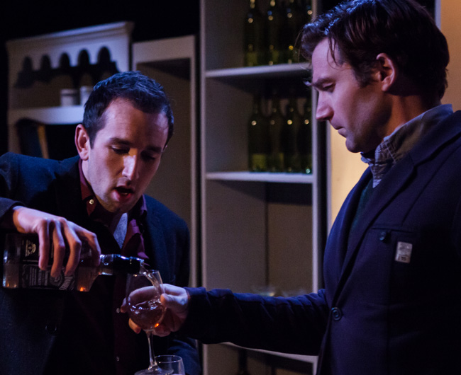 David Carlyle gives a nuanced performance as James: he is just as convincing as the slouchy new graduate (before he makes his money) as the thoughtful son who can see his life ebbing away. Tom Marshall makes a stirring, melancholy Sandy, his green eyes often wild and vacant. Simon Harrison as Mark (pictured above with Carlyle) is suitably shallow, while Emily Bowker as Alison does a nice line in sarcasm.