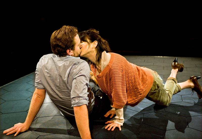 We explored for a while the idea that we might do an American version of it but actually it felt there was something inherently British in the way the characters date, in the way they are self-deprecating, in the way they aren’t direct like Americans often are. There was that exploration. American audiences receive it in a different way. That nod of recognition is stronger in the UK. So it’s very exciting to see it playing back here [with Joe Armstrong and Louise Brealey, pictured below. Photograph © Helen Maybanks]. But essentially the play is a love story so it trades on the chemistry of whoever the two people are that are exploring that story. So it had a different feel and chemistry about it in New York. It was seen as a very experimental play there whereas it’s one of the most commercial things I’ve done. It’s a very unusual play for Broadway, not to be set in a living room, not to have a chaise longue, to have nothing.