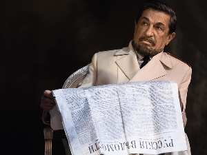 TRISESTRY-7942_Main_ImageElsewhere, the optimism, pessimism or cynicism to which the characters stuck in provincial society constantly, and sometimes repetitively, give way are less sympathetically bedded down in believable humanity. I had no faith in the growth of Viktoria Romanenko's Irina from infant phenomenon to manic despair, though her final quiet acquiescence is briefly moving. Others, including Olga Drozdova's wise big sister and Artur Smolyaninov's convincingly psychopathic Solyony, waver between clarity and impossibly muted tones. Igor Kvasha's ageing Chebutykin (pictured above left) seems note-perfect, even in his repellent drunk scene, until he succumbs in the last act to the inaudible soft tones which seem to be the bluntest but, alas, commonest weapons in the Sovremennik armoury.