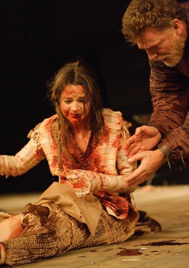 It wouldn’t be Titus without the mutilation of Lavinia. Bailey ensures that there’s nowhere to look but at Flora Spencer-Longhurst’s twitching stumps and bloodied mouth, enforcing silence for long enough to give these wounds their chance to speak before Marcus (Ian Gelder) leaps in to paraphrase. Not the buffoon he sometimes can be, Gelder finds some small dignity in the impotence of the role.