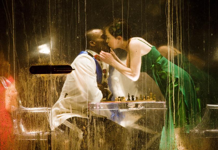 The muddled lexis of visuals extends to dress, placing Kirsty Bushell’s tightly-wound Olivia somewhere in the 1940s, while Emily Taaffe’s Viola is pure Hoxton hipster. But while the riot works well enough stylistically, its confusion also seems to infect the emotions of the play. Perhaps it’s the water-logged setting, but under David Farr’s direction neither Bushell and Taaffe nor – unaccountably – Taaffe and Jonathan McGuinness’s rather fey Orsino can summon even a flicker of a spark. It’s a lack that rather throws off the emphasis of the play, placing undue emphasis on the scheming of Sir Toby and his cronies.