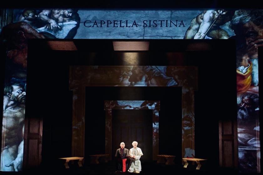 It can’t have been an easy pitch. “Popes. Both foreign, yes. German and Argentinian – sorry, can’t change either. Eighty-something and the other’s a decade younger. Mainly just talking about their pasts and their different approaches to Roman Catholic theology. No chorus of angels, no. Can't cross-promote with Sister Act, no. We thought we’d open in Northampton…”