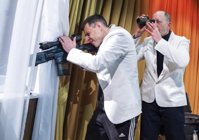We join a well-heeled couple in a Kyiv hotel room near Maidan Square, home to a long-standing protest camp. The couple’s student son has been an activist there for 18 months, and his anxious mother (Sally Giles) wants to see him. His party-member father (David Michaels) does too, for a different reason. When he goes off to take a squirrelly phonecall, the government pushback begins, given human form by two aggressive men (Daniel Betts, Ian Bonar) who arrive at the hotel room claiming to be from room service. Their boss, though, is President Yanukovych, elected by over 60% of voters to take Ukraine into the EU, but reneging on that promise. These men are from the oblasts in eastern Ukraine already part-occupied by Russia. What unspools is the couple’s worst nightmare and the onset of Ukraine's occupation.