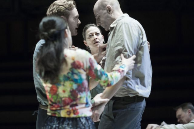 In the meantime, we have a breathless, interval-free View performed with virtually no props (when one does appears, like a chair, the moment is held for a deliberately long time), its cast circumnavigating the stage barefoot. The aim is to tap into the primal passions coursing through a play that gives way to a murderous rage, in which case who needs visual distractions to get in the way? Jan Versweyveld's set - gradually raising and lowering at the start and close of the action - functions as both gladiatorial arena and mausoleum, as befits Eddie's headlong journey into a psychic abyss of his own making. And given that his eyes, we are told, "are like tunnels", how fitting that the rear of the stage should feature a door opening on to its own metaphoric tunnel of blackness - a vision of Eddie's unfortunate destiny and those doomed to exist in his (and its) orbit.