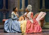 To begin with, Lear appears alone for a moment, enjoying the stage-managed surprise he is about to spring. His daughters sweep in dressed in ball gowns and the court sing together. All seems well-ordered, even good-natured, until the fateful fracturing of the kingdom. Sinéad Cusack plays good-hearted Kent, banished for speaking up and soon disguised as an Irish-accented male servant to the king in his homeless wanderings. The gender change makes perfect sense (as a similar casting, of Saskia Reeves did in Nancy Meckler's Globe production last year) and Cusack carries it off brilliantly.