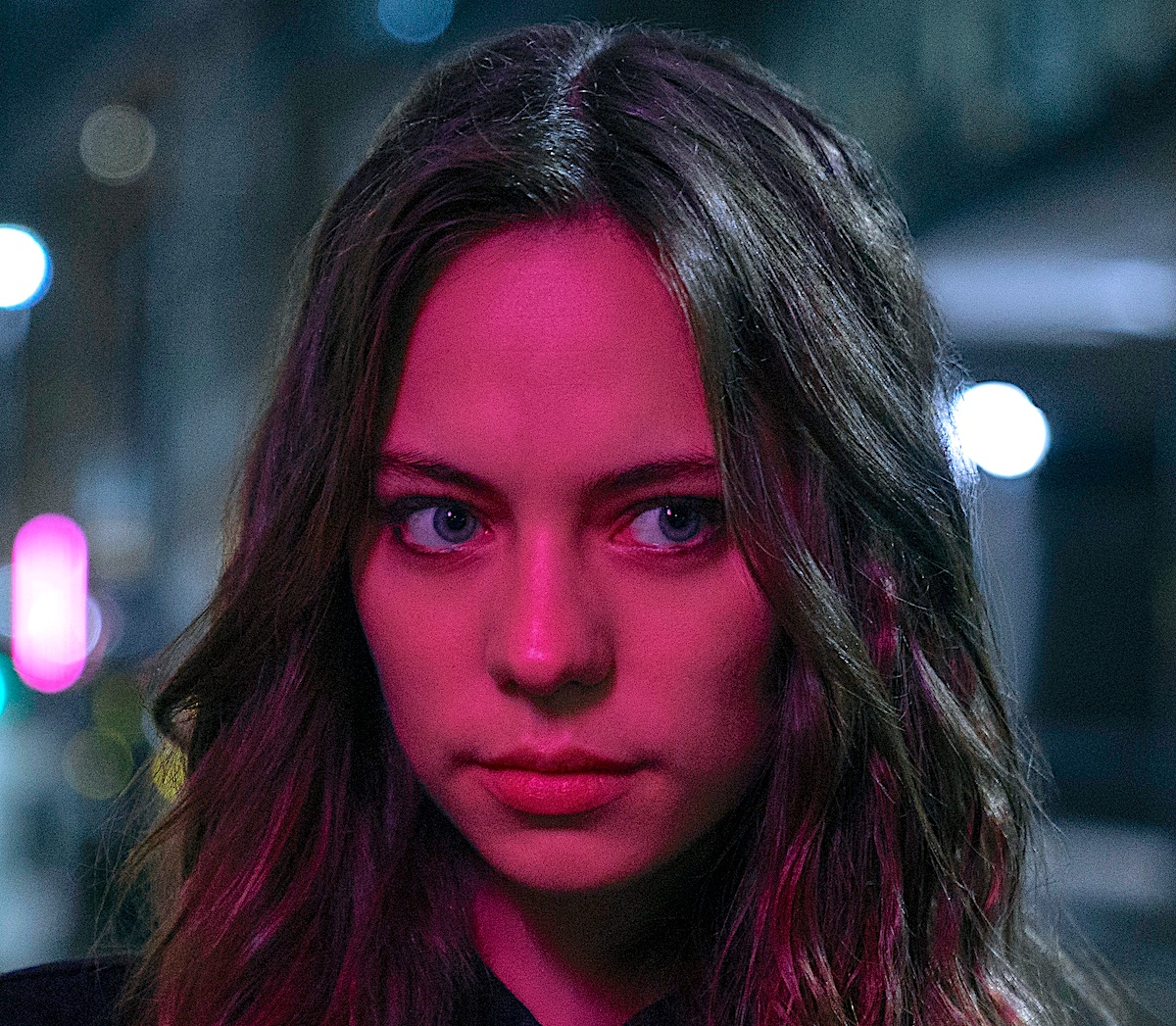 Weird stuff is going on, not least with Auggie (her full name is Augustina Salazar). She’s working on the development of revolutionary “nanofibers” in a project funded by entrepreneur Denys Porlock (Adrian Edmondson), but she keeps seeing a hallucination of a clock counting down before her eyes. A mysterious girl called Tatiana (Marlo Kelly, pictured below) appears and tells her she must shut down her project or else. As a kind of unanswerable calling card, she tells Auggie to watch the skies at midnight the next day. When she does so, all the stars in the night sky obligingly blink on and off, as if to say “I told you so”.