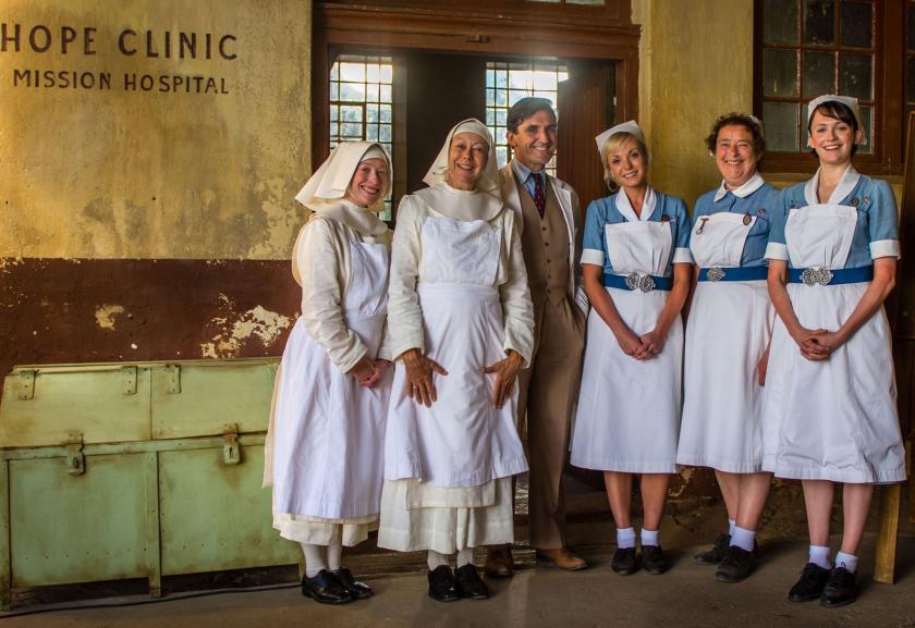 Very nice it looked too, as an emergency squad of Nonnatus House nuns, midwives and Dr Turner (pictured below: Stephen McGann, with patient) was bussed bumpily down dusty roads to provide critical assistance to the struggling Hope Clinic. Mother Felicity had just died, and the clinic was short of money, medical supplies, water and manpower. With a polio epidemic brewing in the area, a vaccination programme was urgently required.
