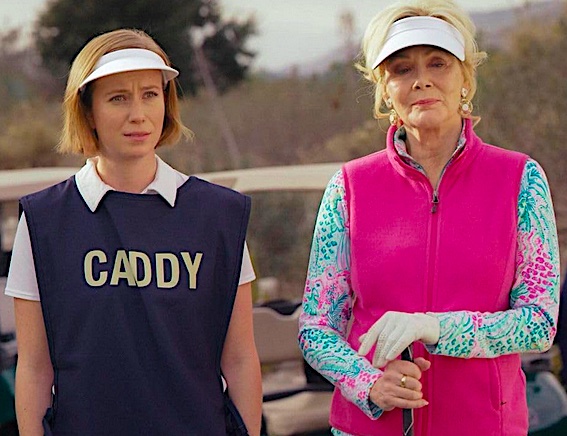 Deborah’s Late Night quest provides the spine for the season, and Smart’s mercurial, multi-layered and sometimes scary performance remains a thing of wonder. There’s plenty of hilarious and bizarre scenery along the way. Among many highlights is a weekend at a swanky resort where the American Television Affiliates Golf Tournament is being held (Hacks excels at spotlighting the corporate self-importance of its chosen industry). Here, it seems that Deborah’s quest to get the Late Night gig is fatally derailed, but this prompts her into putting on an epic display of pro-style power golf. Network supremo and golf fanatic Bob Lipka (Tony Goldwyn) is vastly impressed, with results that Deborah herself can scarcely have foreseen. Meanwhile, Ava has a bizarre encounter with Christina Hendricks’s character (billed as “Gay Republican”), who makes Ava an obscene offer she can’t accept (Hendricks pictured below).