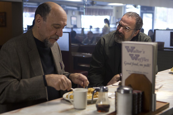 Not that the production was entirely lacking in panache, as a fateful aura of gloom drifted over Washington DC and the hinterlands of Virginia. Mandy Patinkin's Saul Berenson has now been put in charge of what remains of the CIA, and he is shouldering the burden with a sense of infinite weariness and woe, his free-range grey beard even more Old Testament-ish than ever. They've wheeled out F Murray Abraham (pictured above with Patinkin) as a mysterious senior spook, Dar Adal, to give Saul a kick up the backside when necessary. One of Saul's few remaining employees is Carrie (Claire Danes), now being hounded by a Congressional committee under the aggressive helmanship of Senator Lockhart, who rightly senses that the spooks are spinning him a pack of lies about what they knew about Brody and when. Lockhart's suspicions are being fuelled by damaging leaks from within the CIA.
