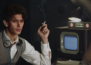 Meanwhile, Freddie (pictured below) was declaring that "newsreels are dead", and that "we've bored the public for too long". Happily, help was at hand in the shape of a new current affairs programme, "The Hour", which was being prepared in strictest secrecy by the Beeb's Head of News Clarence Fendley (a donnish Anton Lesser). It was to be produced by the glamorous Bel Rowley (Romola Garai), one of Lyon's colleagues in the impressively decrepit crypt where they knocked newsreels together.