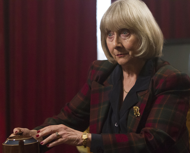 Mix Cellini (Luke Treadaway), the “protected tenant” of Blaise House, is obsessed with Christie to the point that he keeps spotting the killer on the stairs. The servicer of gym equipment and bored housewives is delighted when his landlady, Gwendoline – never Gwen – Chawcer (Geraldine James, pictured right), reveals she once met “the unpleasant little man”.