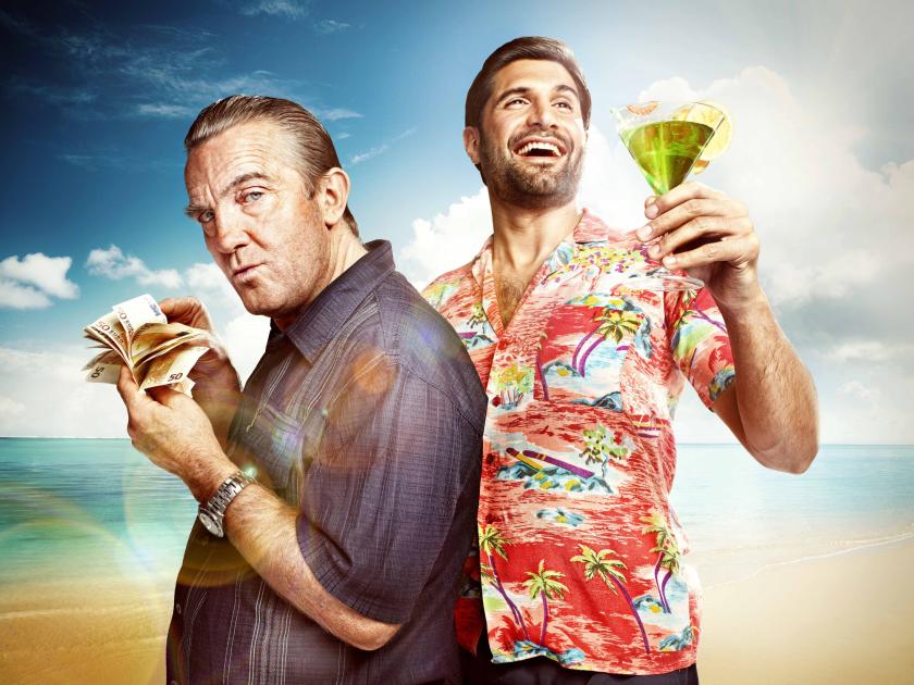 Gravelly, Winstone-esque banter about the trauma of putting down the sawn-off and having to stop for red lights. Poor taste in swimwear and the chunkier kind of jewellery. We know what to expect from a sitcom about life on the Costa, on the run. Which makes SunTrap, BBC One’s new take on the genre, highly adventurous. Unfortunately, having torn up the rulebook, what we’re left with is not a brilliant new approach, but a fistful of fragments, albeit highly coloured and diverting in patches. As fugitive tabloid reporters (the series’ title tips the wink about who’s in the Beeb’s sights here) Woody (Kayvan Novak) and Brutus (Bradley Walsh) bump into one another up on the Costa, the credits have scarcely finished by the time Woody has persuaded Brutus to get scamming again.