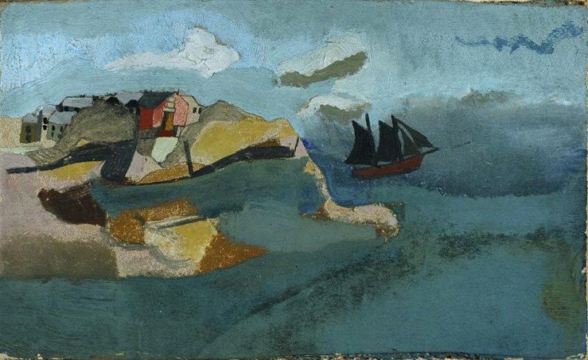 It was while staying in Cornwall that the Nicholsons met the marine painter Alfred Wallis, beginning a friendship that would have a radical effect on all parties. Completely self-taught, Wallis seemed to embody an approach “as unselfconscious, as genuine, as direct and vital as we find in most primitive art” and Ben emulated his simple, almost childlike style. Winifred in particular responded to Wallis’s instinctive capacity to convey movement, which seems to have chimed with her own talent for imbuing her paintings with energy and vigour. To Winifred, Wallis “painted with the imagination of a poet and the restraint of colour and sense of movement of a master,” and these qualities are evident in her raw, elemental paintings, such as Seascape with Two Boats, c.1932 (pictured above left). For Wallis, the meeting with the Nicholsons was particularly fortuitous, as he found himself suddenly in demand, with art dealers clamouring to buy his work.