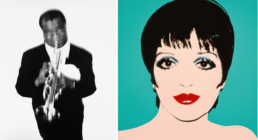 They were the people who in the mid-1970s were shaping America: powers in the military, politicians, spies and billionaires, and a handful of activists from César Chavez to trade unionists. And yet just looking at them, could you tell? The men, mostly, are in suits; most look like one’s stereotyped notions of the appearance of middle management. Very few are instantly recognisable now, and it is strikingly disconcerting how ordinary they look. There are no trappings, just mostly men looking businesslike, and very occasionally rather more approachable as a few sling their jackets off. It is, however, as compelling as the kind of meditations on power and prominence in the political and cultural portraits Gerhard Richter deployed in paint which were themselves based on photographs. (PIctured below: Richard Avedon, Louis Armstrong, 1955; Andy Warhol, Liza Minnelli, 1976)