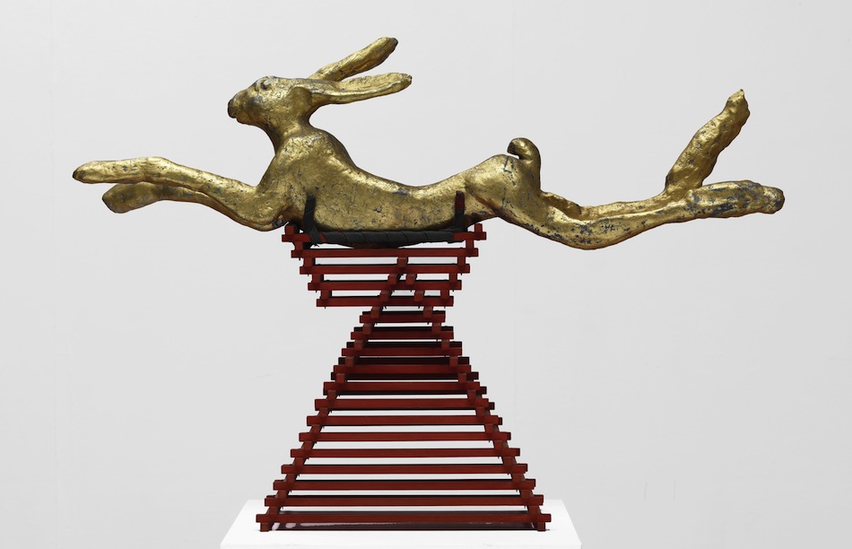 If translation from clay into marble seems forced, the transition from clay into bronze has a long and illustrious history. Flanagan’s first bronze cast of a leaping hare was produced from a clay prototype in 1980 and from then until his death in 2009, he produced bronze hares mischievously cavorting in every conceivable fashion. They enjoyed enormous popularity, but stifled the habit of restless enquiry that had once made his work so provocative. The exhibition ends with Leaping Hare, Embellished (1980) (pictured above) and Large Leaping Hare from two years later, so drawing a convenient veil over the last 17 years of his output and his decline into the charm and whimsicality that were always present but, thankfully, were held in check until the final decades.