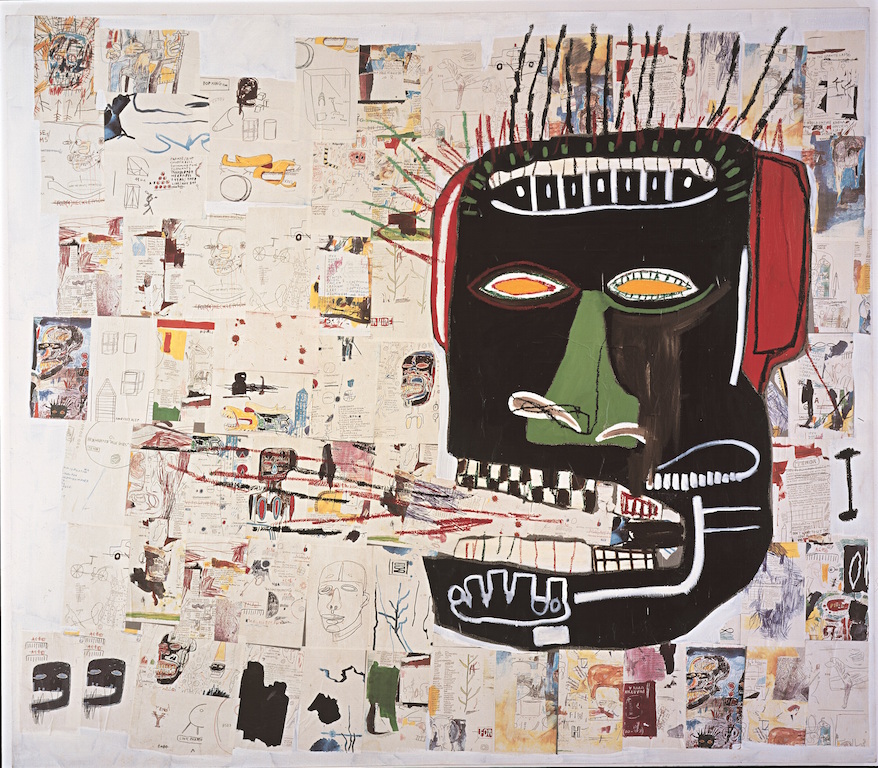 By exploring black history, its as though Basquiat was searching for confirmation of his own identity for, despite his burgeoning success, he clearly felt like an outsider in the predominantly white art world. When, in 1983, he was invited to Los Angeles for his second show at the prestigious Larry Gagosian Gallery, he was joined by graffiti artists Rammellzee and Toxic. Hollywood Africans features the three friends looking perplexed in tinseltown, where racial stereotypes are routinely reinforced by movies featuring blacks as maids, servants, criminals and thugs. In an interview Basquiat remarked that he would like to be a film director making movies about Afro-Americans as “people of the human race and not aliens, and not all thieves and drug dealers”.
