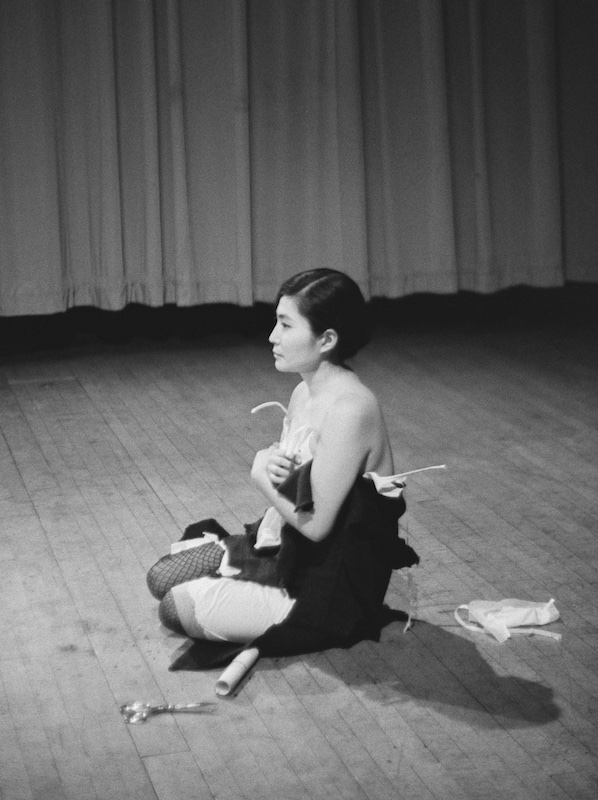 In Music of the Mind, Tate Modern acknowledged that, when she met John Lennon, Yoko Ono was already an established artist. Focusing on the early years in New York, where her Chambers Street loft became a focal point for multi-media happenings, the show included her early films, drawings, conceptual paintings, installations, and performances like the seminal Cut Piece 1964 (pictured right) – in which she kneels on the floor while, one after another, audience members cut off bits of her clothing – as well as the films, Bed-ins and recordings she made with Lennon.