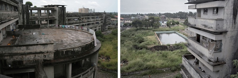 A similar degree of optimism inspired the modernist buildings that sprang up in the Sixties and Seventies in newly independent African countries such as Angola, the Congo and Mozambique. But throwing off the yoke of colonialism proved unexpectedly difficult; economies faltered and buildings erected to symbolise progress were left to crumble. The Grande Hotel in Beira, Mozambique, for instance, was designed to accommodate wealthy guests, but when they failed to materialise it was turned into an apartment block. Guy Tillim’s photographs of the decaying concrete terraces (pictured below in 2008) are a melancholy testament to frustrated hopes and unexpected setbacks.