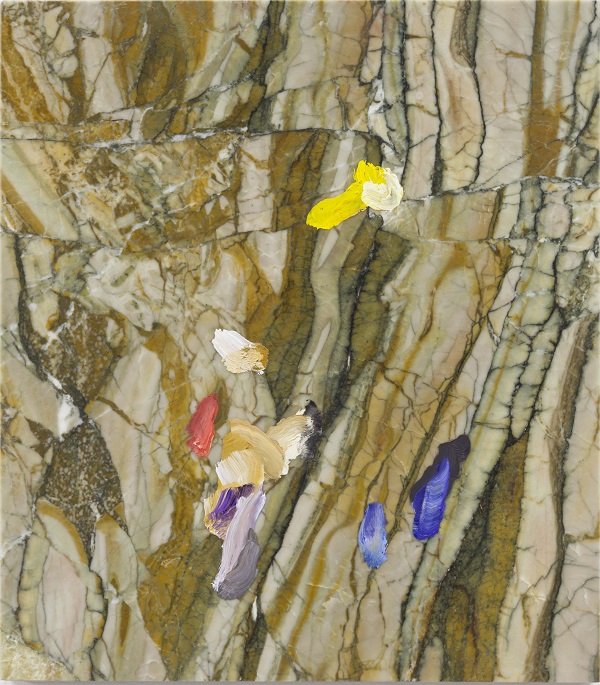 Similarly, the primary colours Vermeersch has applied to a piece of polished marble surely amount to a commentary on the failure of painting: instead of forming a legible picture plane, his marks are disengaged from their support, confusing and impeding our view. The relationship between paint and ground is disrupted, and put into a sort of limbo (Pictured below left: Untitled, 2014).