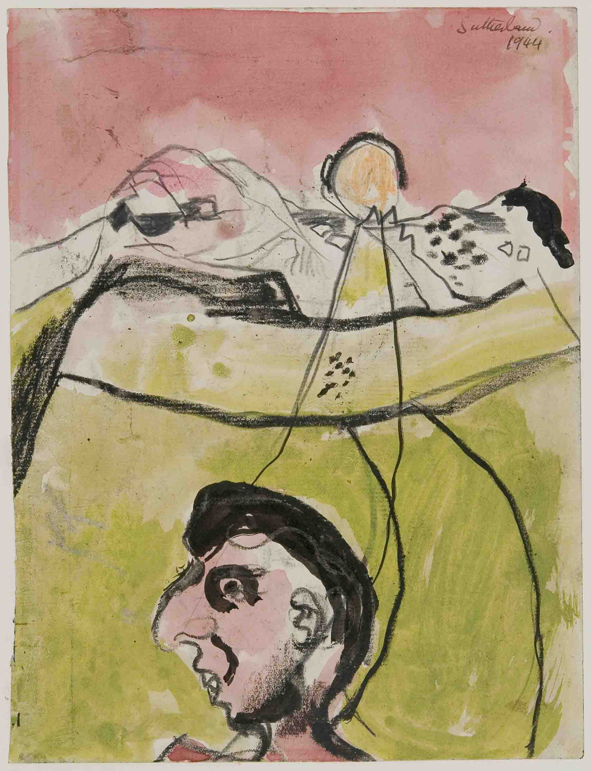 This survey focuses instead on Sutherland’s works on paper, those studies and sketches which possess a quickness and fluidity that his finished paintings often lack. The exhibition concentrates on three aspects of Sutherland’s career: his Welsh landscapes from the 1930s; those depicting the bomb devastation on the Home Front; and the works created after his return to Pembrokeshire in the 1970s, a trip that was made to film an Italian television documentary about his work but which saw him remain for two years, having lived in France from the late Fifties.