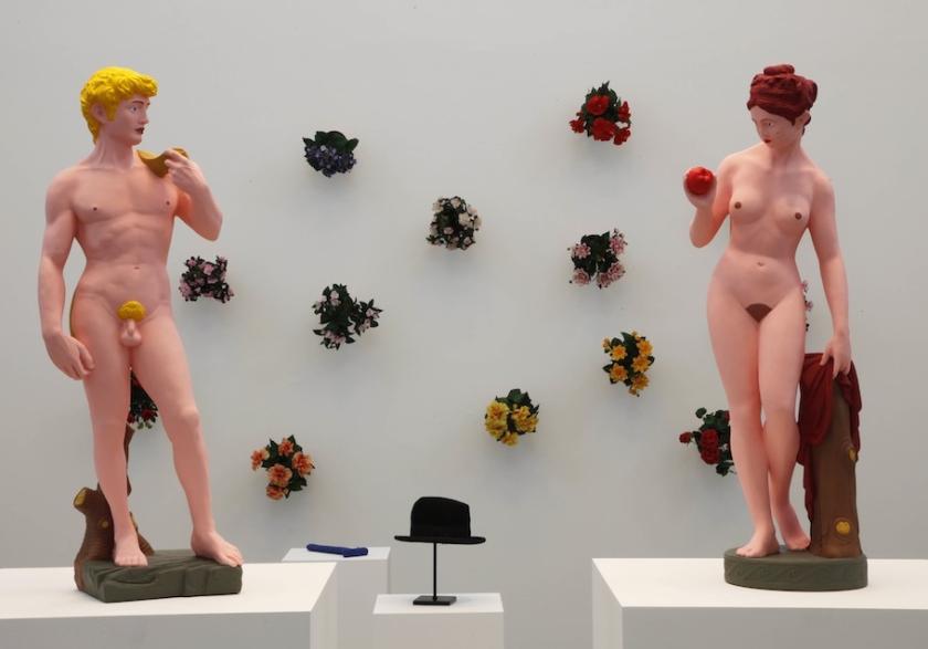 My friend Luise imbued her market-stall masterpieces with a twist of surrealism by painting them bright red or blue, but Feldmann is playing a more subtle game. His David has been given hot pink flesh and blond hair – a crude approximation of the colours the ancient Greeks painted the marble statues that would later inspire Michelangelo. How, one wonders, would Renaissance artists have responded had they seen the originals gaudily coated in bright colours instead of bleached to pallid good taste?