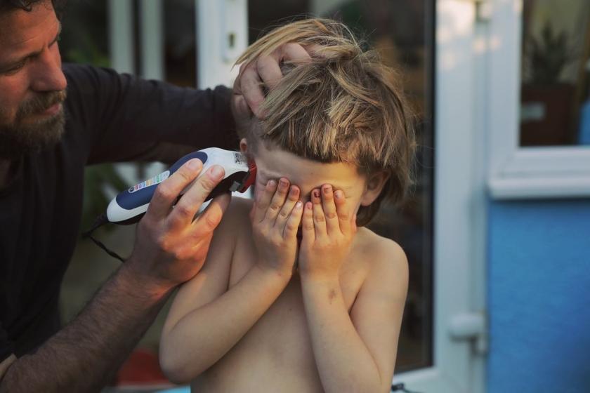 Home Hair (main picture) is comically obvious; the child winces hiding her eyes as the father razor in hand is doing his best, however inadequate, to rise to the domestic occasion as the family hairdresser. Meanwhile back at the supermarket, a totally exhausted young man in a Tesco uniform, almost asleep as he slumps exhausted, is shown under the title Just One More Night Shift.