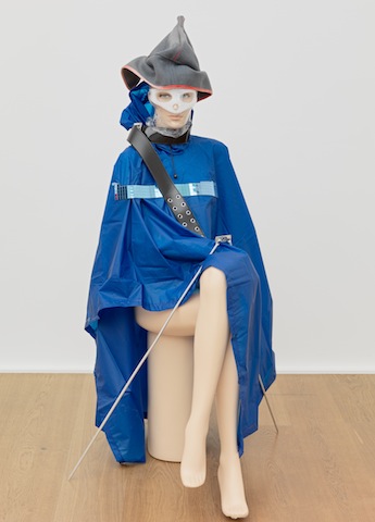Yet Isa Genzken’s mannequins really exist as a thing apart; they appear to express a very personal kind of visual idiom. One female dummy (pictured right) sits draped in a ridiculous makeshift garment, with a cheap studded belt worn like a sash. The face is behind a paper mask edged with some flimsy clear plastic, so that it’s completely behind cover, and there's a long two-pronged metal implement balanced on her knee. One might think of the compass in Blake’s Newton or his ancient Urizen figure, measuring and reducing the world down to its own rigid logic, for that is what the object resembles. But here it is transformed into a wand. She is a high priestess or a sacrificial subject – she could be both. Like Blake, Genzken appears to have her own private mythologies and partly exists in some otherwordly realm.