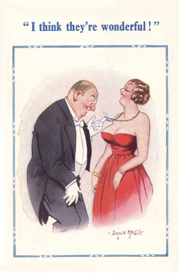 The full value will surprise anyone reluctant to see McGill’s saucy cartoons as art. Winner’s pricier McGills went on sale for £2,500, which represents a plentiful return on 20 quid. “When I bought my Rackhams and Dulacs and Donald McGills they weren’t considered art. ‘You say you’ve bought a Donald McGill? Well, he’s rubbish. What did you pay?’ ‘Twenty pounds.’ ‘You’re mad.’”