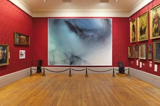 We move to a hushed and densely packed room featuring religious scenes and biblical narratives and encounter the most breathtaking installation in the collection. The end wall is filled with one of Tillmans’ greatest, most sublime – and technically confusing - works, Freischwimmer (main picture, above). With its liquid effect and abstract swirls and rhythms, it comes closest to total abstraction, and to painting rather than photography, and it replaces a vast 500-year-old Flemish tapestry now in storage. The most audacious intervention, it transforms the atmosphere in the room; Tillmans notices how the blue tones of the very different skies are all now similarly highlighted.