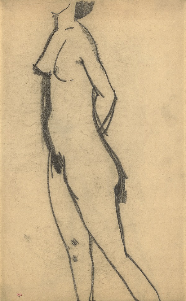 The earliest drawings are self-evidently so, the short, hesitant lines apparently bearing little relation to his more mature and better-known work in which elongated forms are described in exquisitely controlled, sweeping arcs. And yet in the considered, somewhat tentative execution of his Standing Female Nude of 1908 (Pictured right), we can surely see Modigliani testing the expressive possibilities of the human form, anticipating the grace and economy of line that began to emerge over the next couple of years.