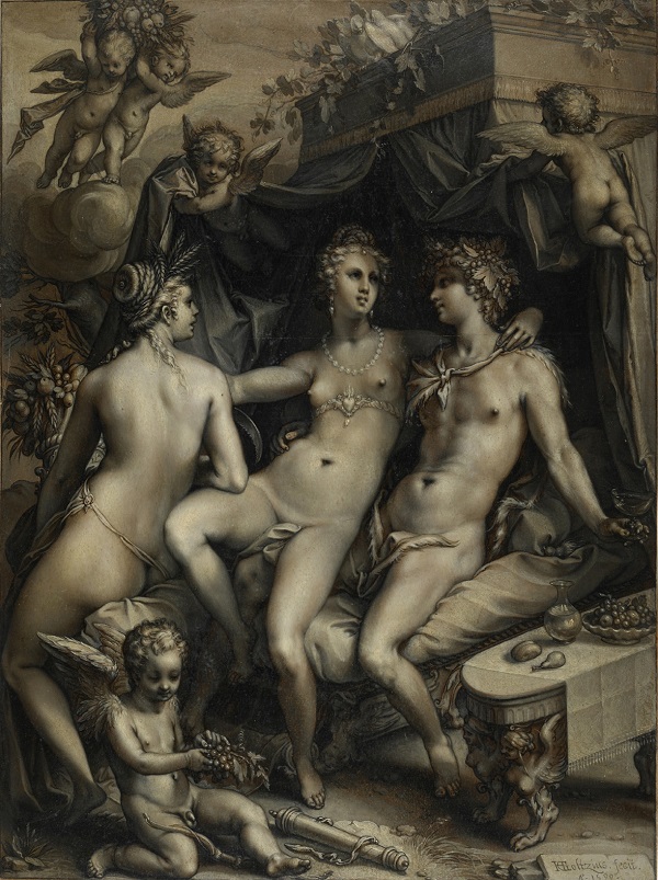 Grisaille brings luxurious sensuality to a bewitching oil on paper depicting the Roman proverb Without Ceres and Bacchus, Venus Would Freeze, 1599 (pictured above right). Made by the master printmaker Hendrik Goltzius, the modelling of the figures is so lustrous as to appear almost sculptural, and the painting demonstrates not only the visual possibilities afforded by a limited palette, but the extent to which monochrome paintings could be prestigious, luxury objects, here responding directly to the aesthetic of the print.