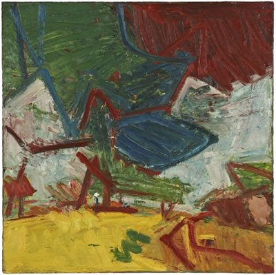 There are splendid cityscapes: two vibrant Auerbachs, Primrose Hill, Winter Sunshine, 1962-64, aglow with that curiously alluring half light of dark days, and Study of Primrose Hill, 1973-74 (pictured above) – one of the subjects of which he never lets go – flank an almost identically sized Kossoff city tangle, Willesden Junction, Summer No 1, 1966.